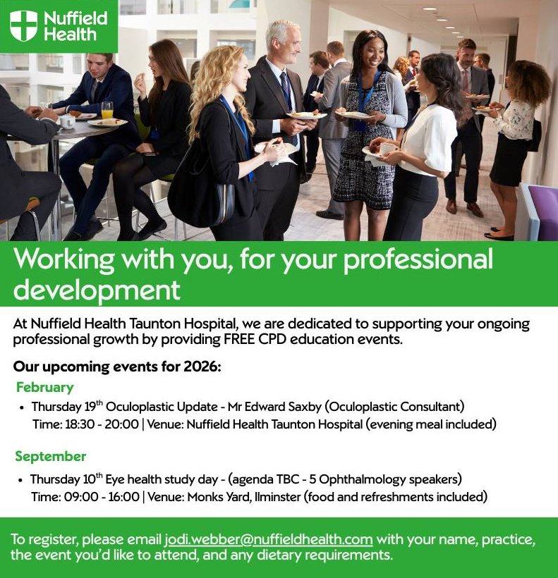 Please see details for free CDP events at Nuffield Health Taunton Hospital in 2026:
